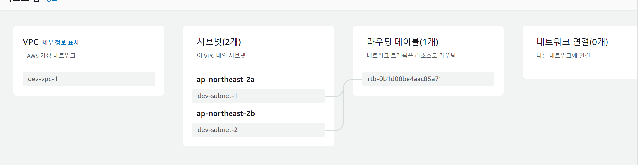 - VPC 및 서브넷이 생성되었으며, 라우팅 테이블은 자동으로 생성이 된다.