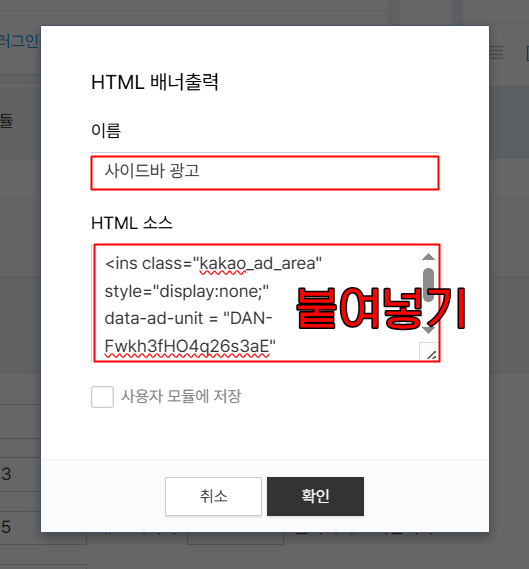 배너 출력이 활성화되었다면 HTML 배너 출력이라는 요소가 생성된 것을 확인할 수 있다.