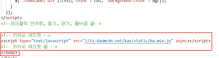 따라서 html 코드 내에서 실제로 삽입할 위치를 찾아 코드를 넣어야 하는 번거로움이 있다. (...)