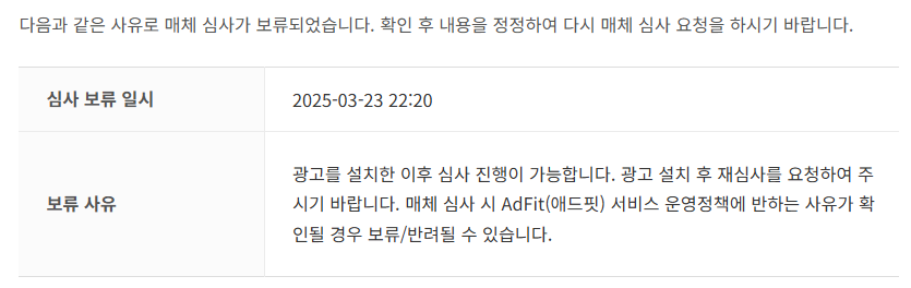매체 심사가 보류된 것으로 확인해서 작성하는 포스팅이다.