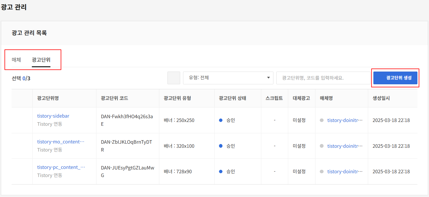 본 포스팅에서는 티스토리 (지금 블로그)를 매체로 광고단위를 생성하고