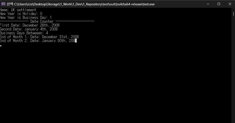 std::cout << "New Year is Business Day: " << myCal.isBusinessDay(newYearsEve) << std::endl;