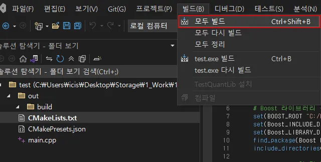 2. CMake 솔루션 test 프로젝트 구조