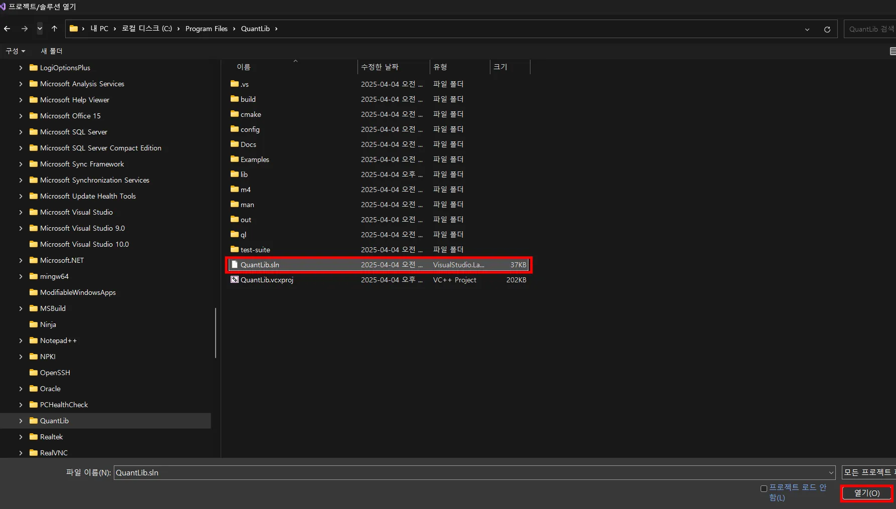 다운받은 QuantLib 디렉토리의 ‘QuantLib.sln’으로 프로젝트 열기
