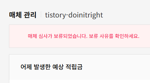 카카오 애드핏 광고를 설치한 이후 심사 진행이 가능합니다. 해결방법